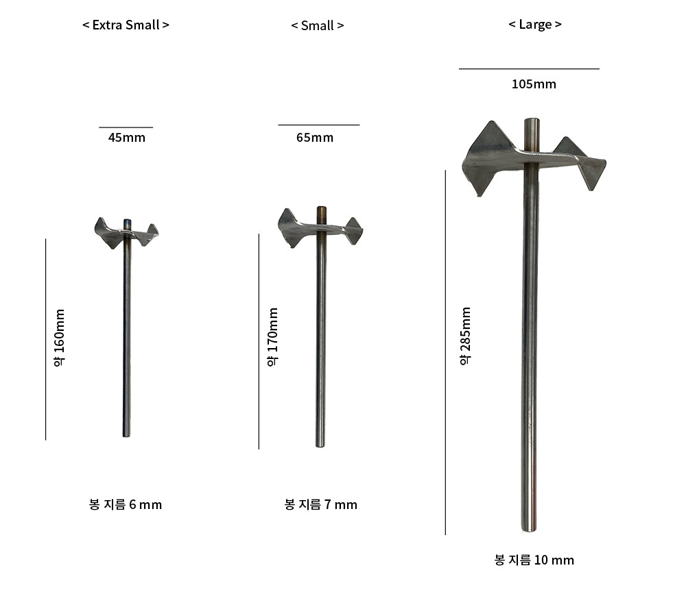 Extra Small (45mm), Small (65mm), Large (105mm) 3 가지 사이즈로 제공합니다.