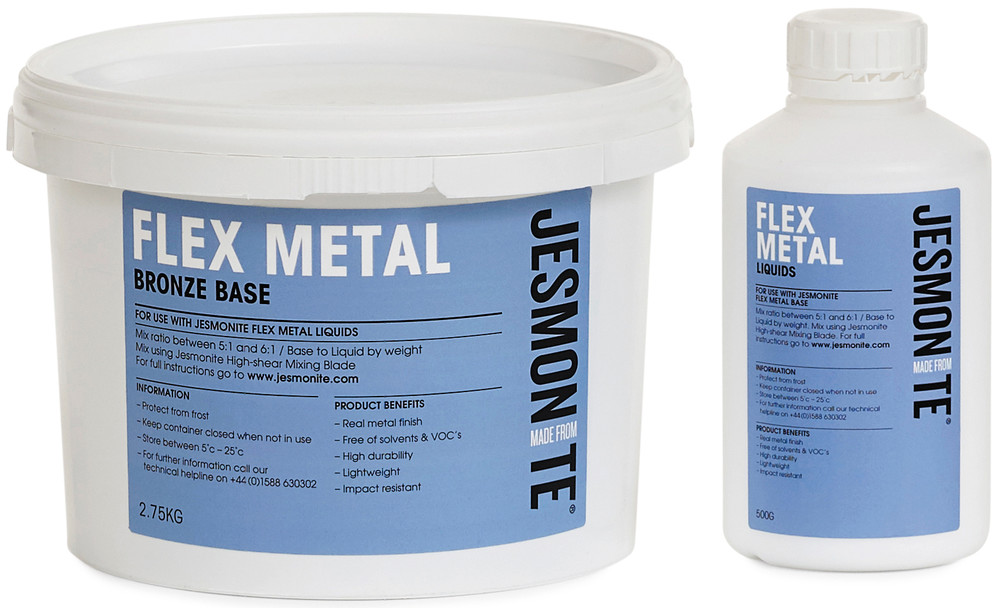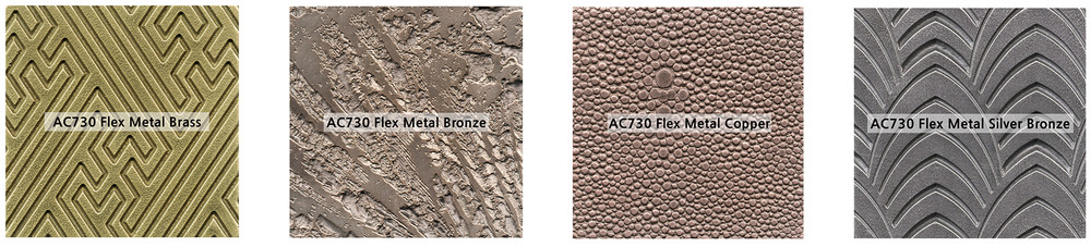 플렉스 메탈 젤 코트는 금속 마감 효과를 위한 제품입니다. 제스모나이트 플렉시블 메탈 액체와 메탈 베이스 가루를 혼합하여, 몰드에 바르거나 AC730이 코팅된 제품위에 도포하여 사용합니다. 브론즈 (Bronze) , 쿠퍼 (Copper), 브라스 (Brass), 실버 브론즈 (Silver Bronze) 4가지 타입으로 표현 가능하며, 상대적으로 적은 비용으로 수준 높은 금속 마감 효과를 만들 수 있습니다
