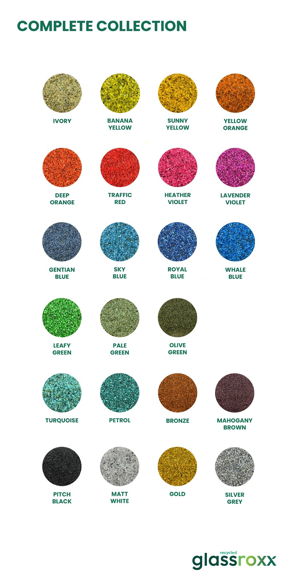 네덜란드에서 온 100% 재활용 유리로 만든 GlassRoxx 컬러 유리칩 시리즈입니다.